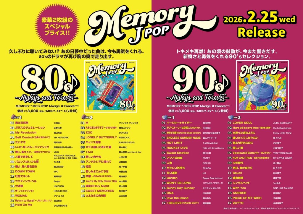 【取り扱い店舗一覧】2月25日発売『MEMORY ~80's JPOP Always & Forever~』『MEMORY 〜90’s JPOP Always & Forever~』