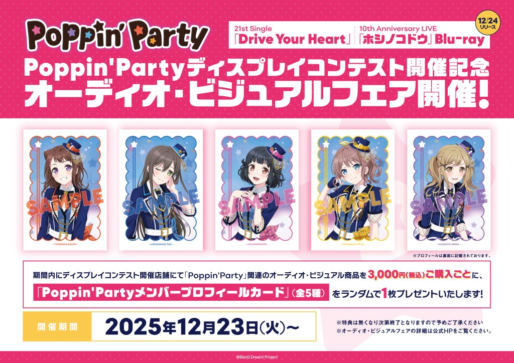 Poppin'Party 21st Single「Drive Your Heart」・10th Anniversary LIVE「ホシノコドウ」のリリースを記念して全国の対象店舗で店頭ディスプレイコンテストを開催!