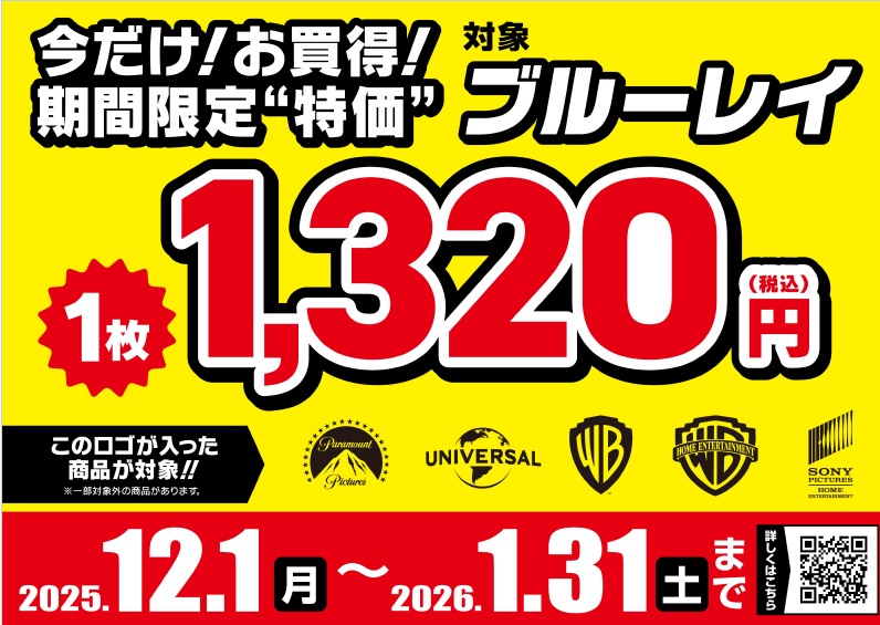 期間限定ブルーレイ1枚1,320円セール 2025年冬